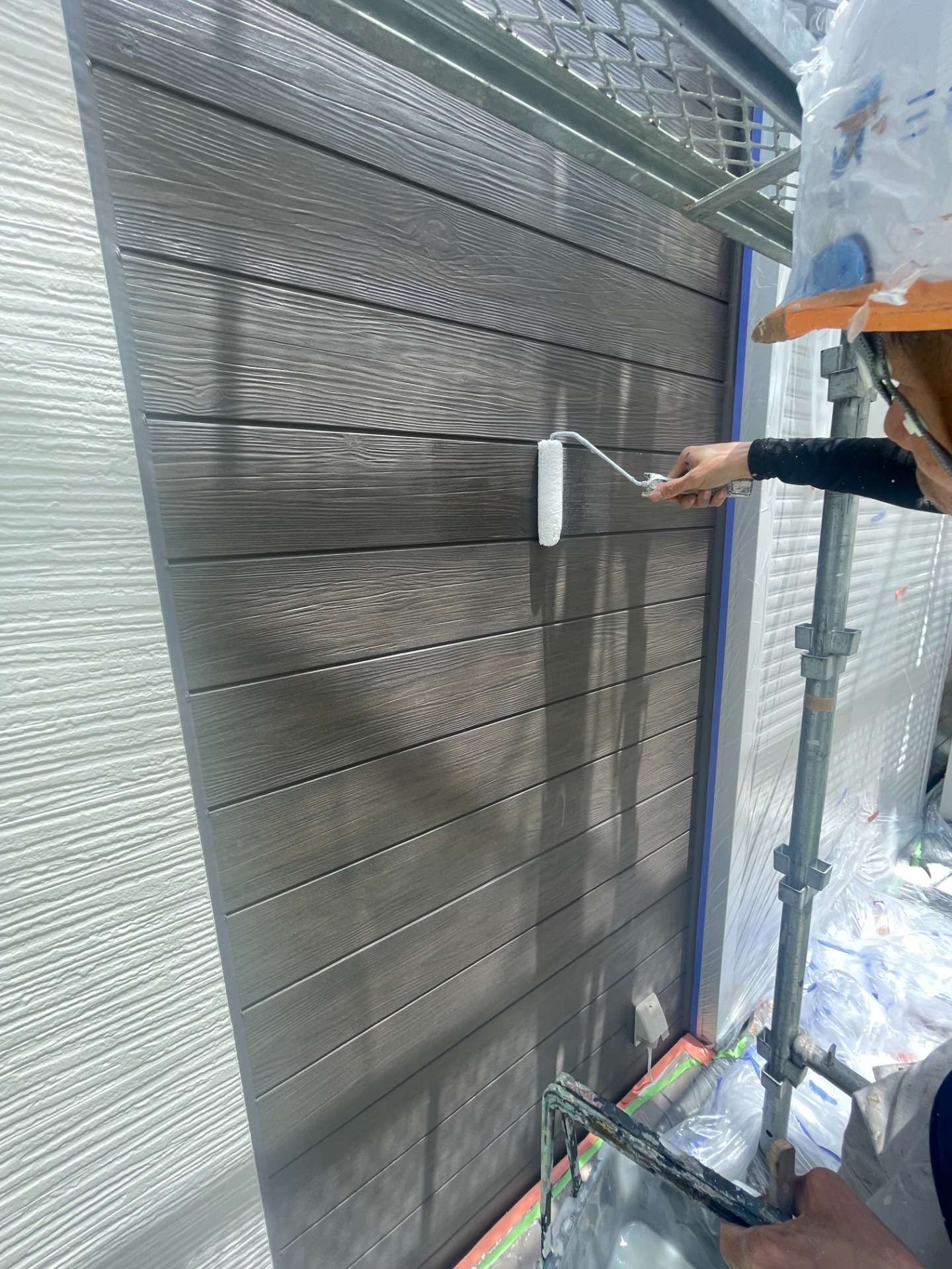 サイディング面 上塗り2回目施工 (プレミアムシリコン)
